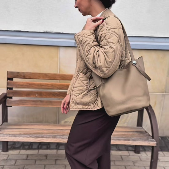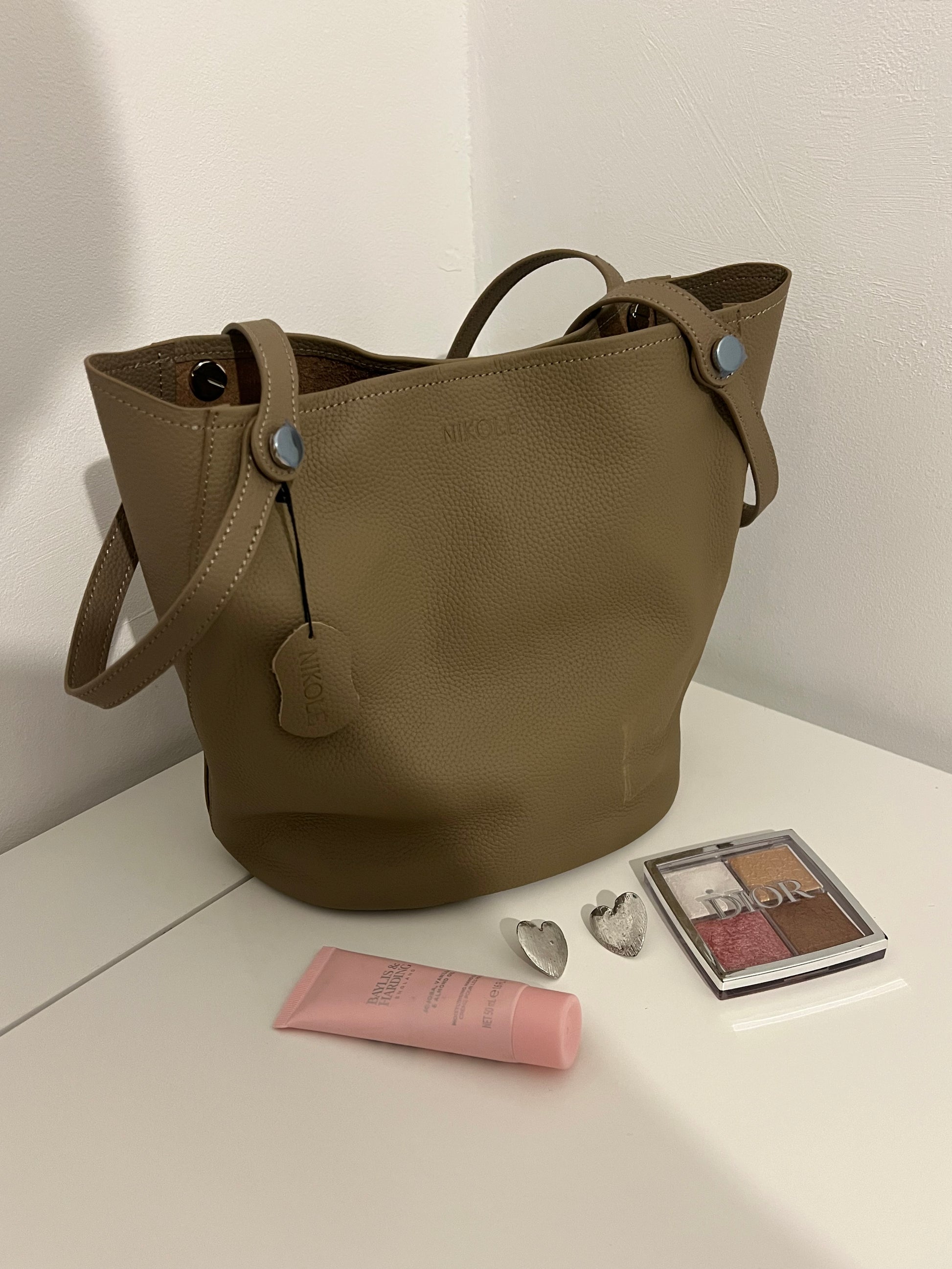 Meet our minimalist bucket bag made of premium natural leather in a beautiful Warm Caramel shade. Elegant, soft to the touch and roomy — perfect for everyday styling and evening outings.