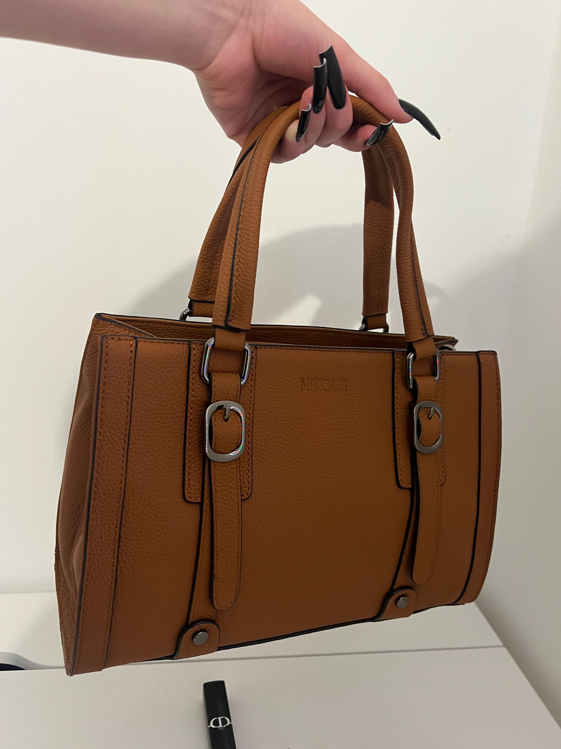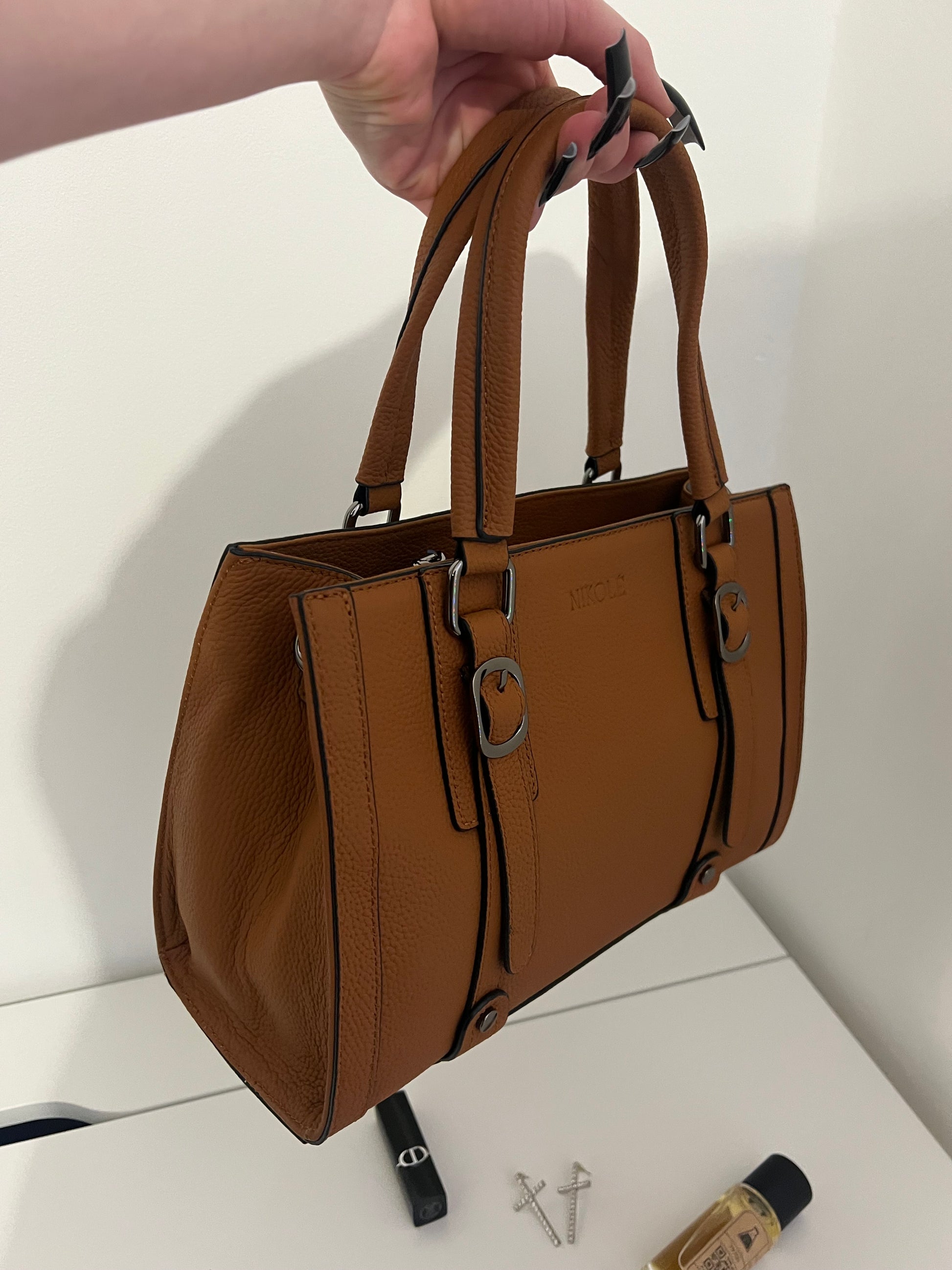 The NIKOLÈ Caramel Tote in a warm caramel shade brings effortless elegance to your daily look.