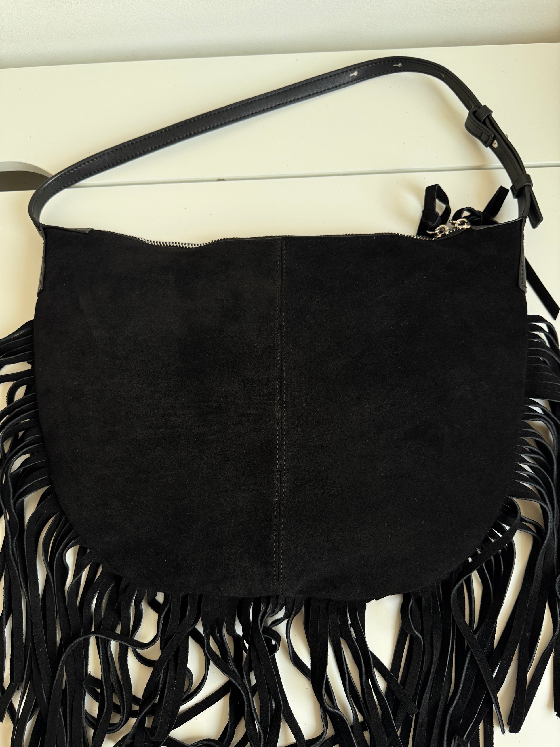 NIKOLÉ JANE – Black Suede Fringe Shoulder Bag | Western Chic