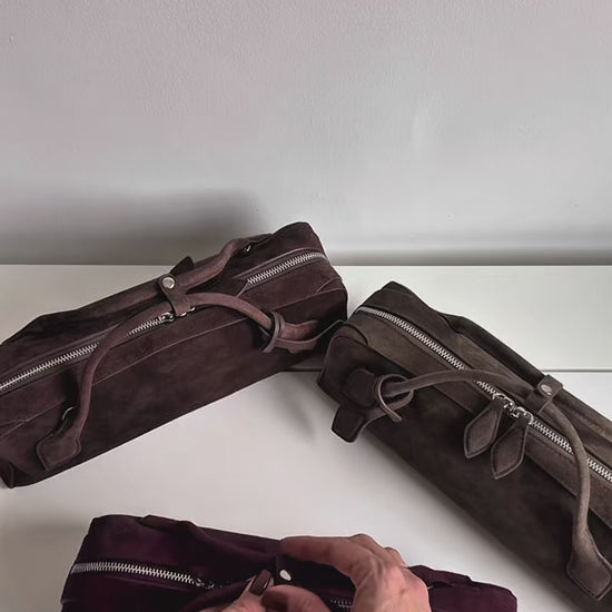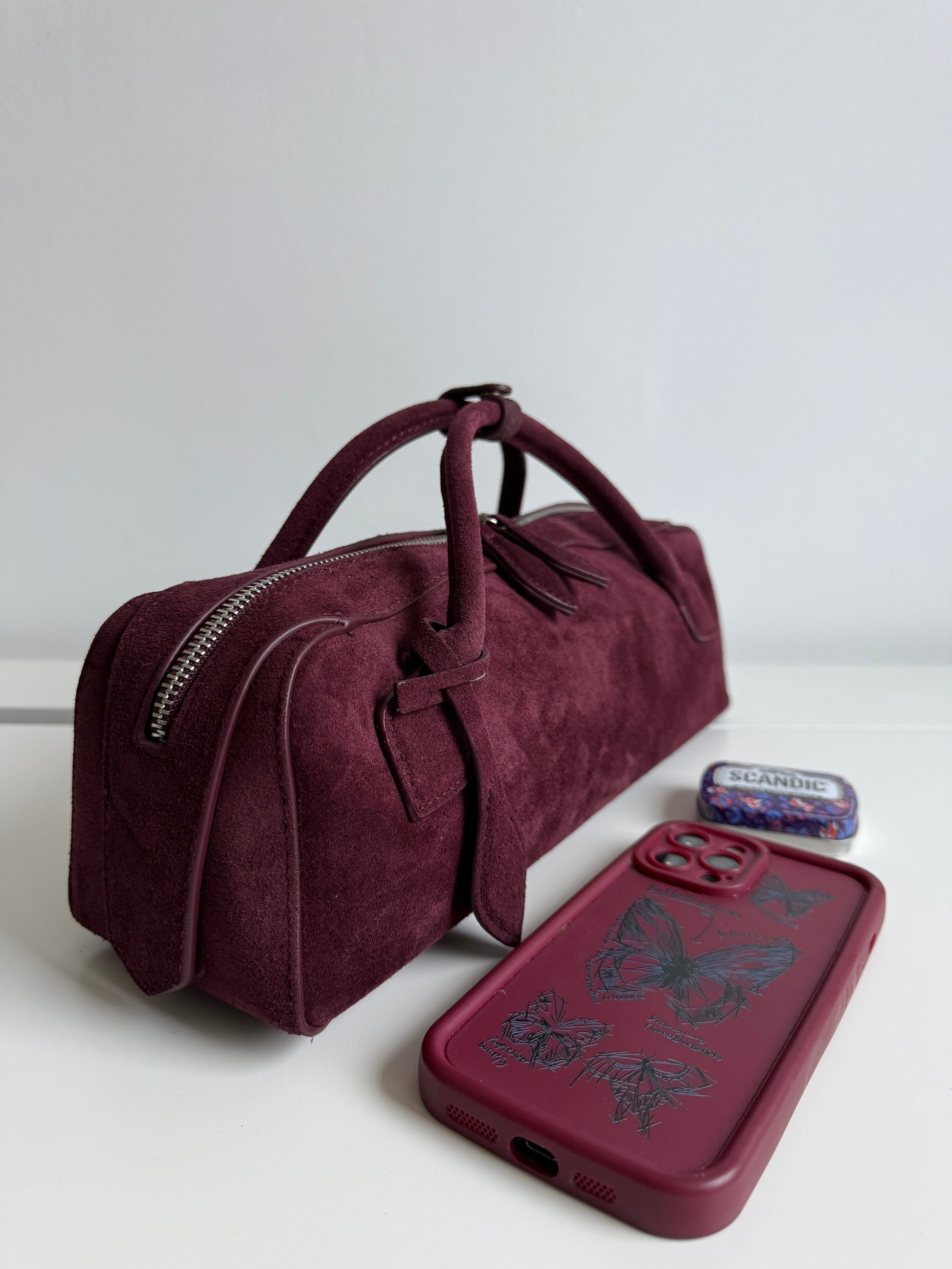 Lena – Wine Berry Suede Bag (Natural Suede Leather)