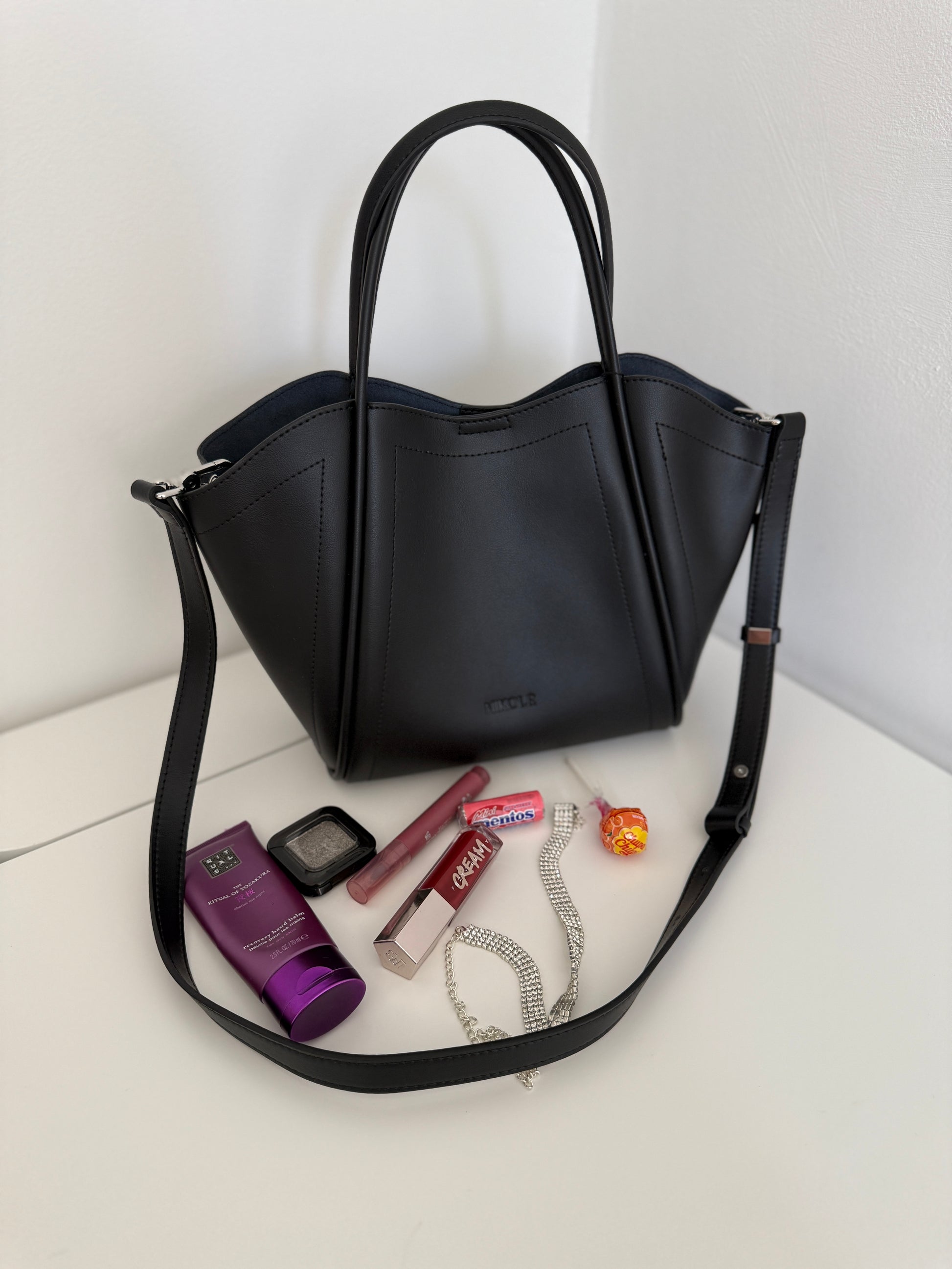 Its dimensions — 28 × 10 × 20 cm — make it compact yet surprisingly spacious. The long strap allows you to wear it comfortably over the shoulder or crossbody.