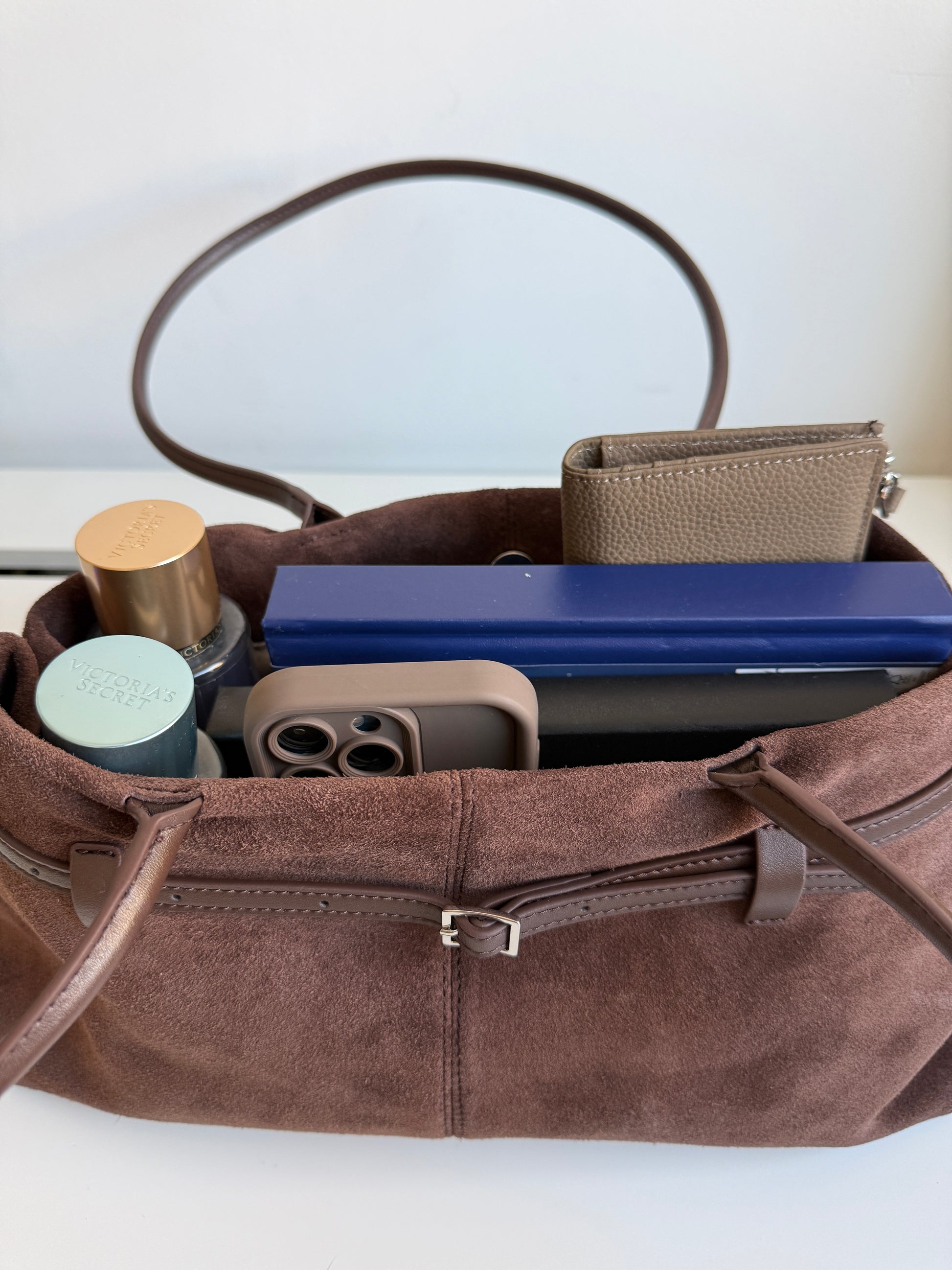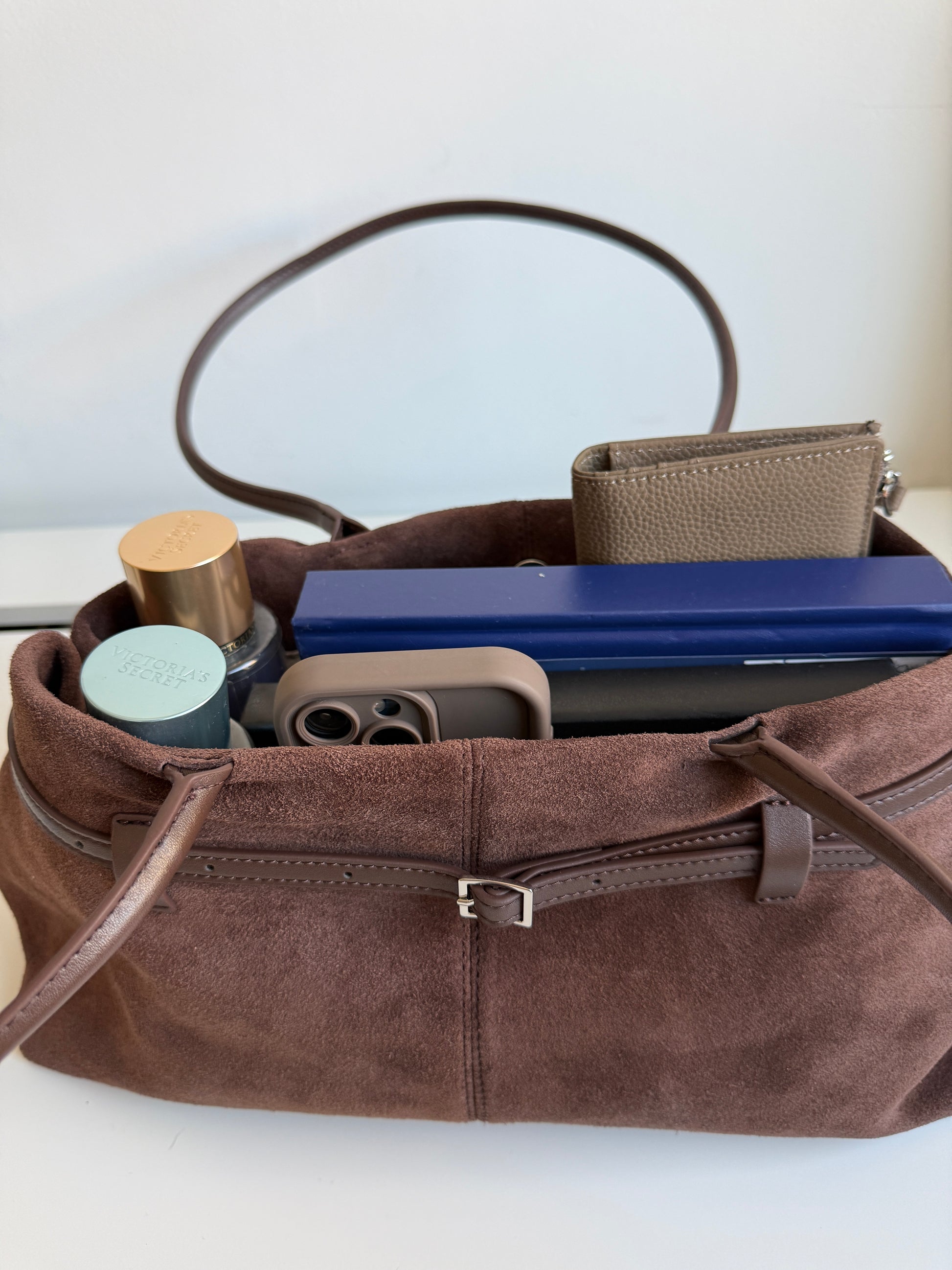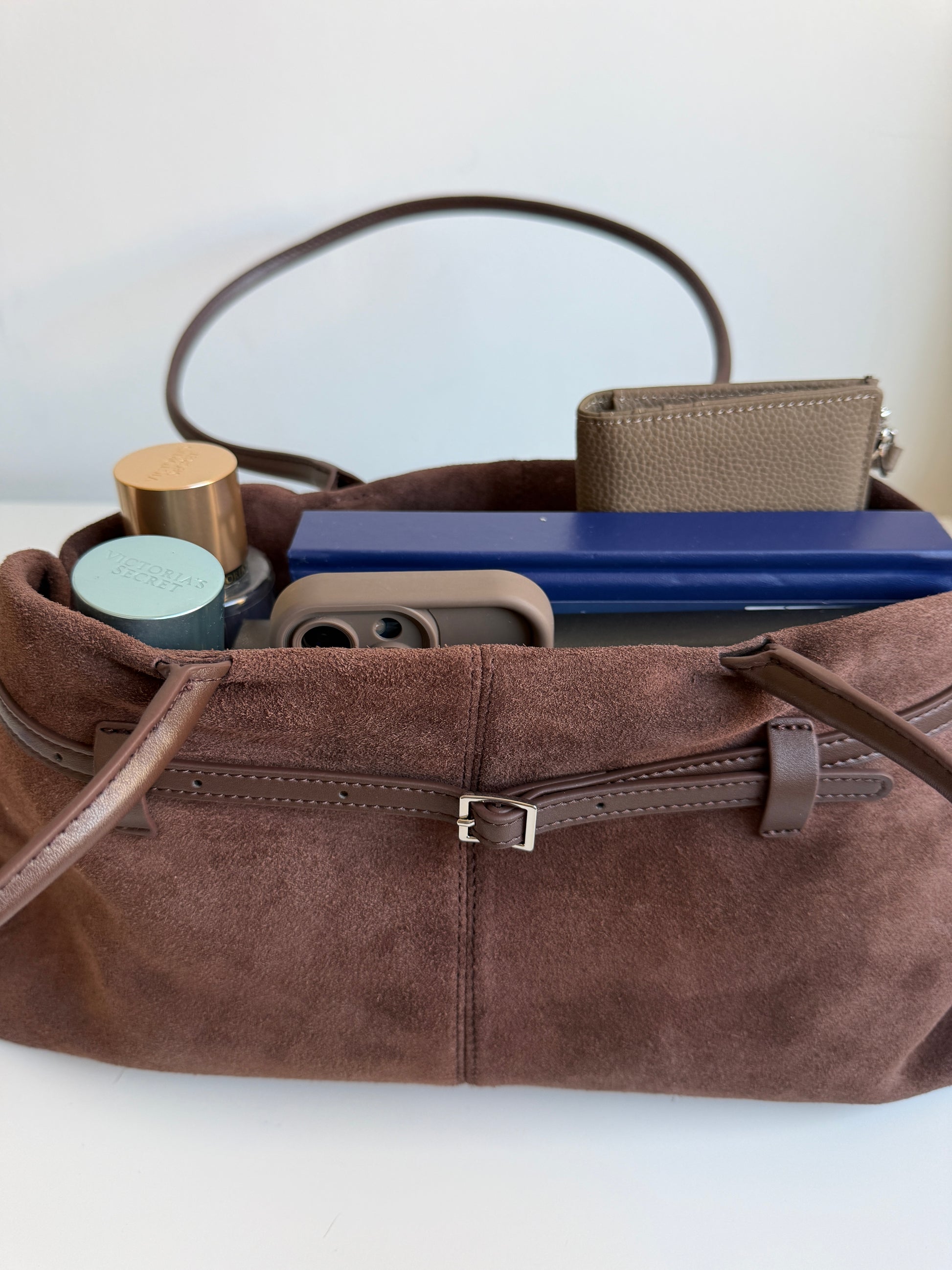 NIKOLÉ MARA – Chocolate Suede Shoulder Bag | Soft & Neutral