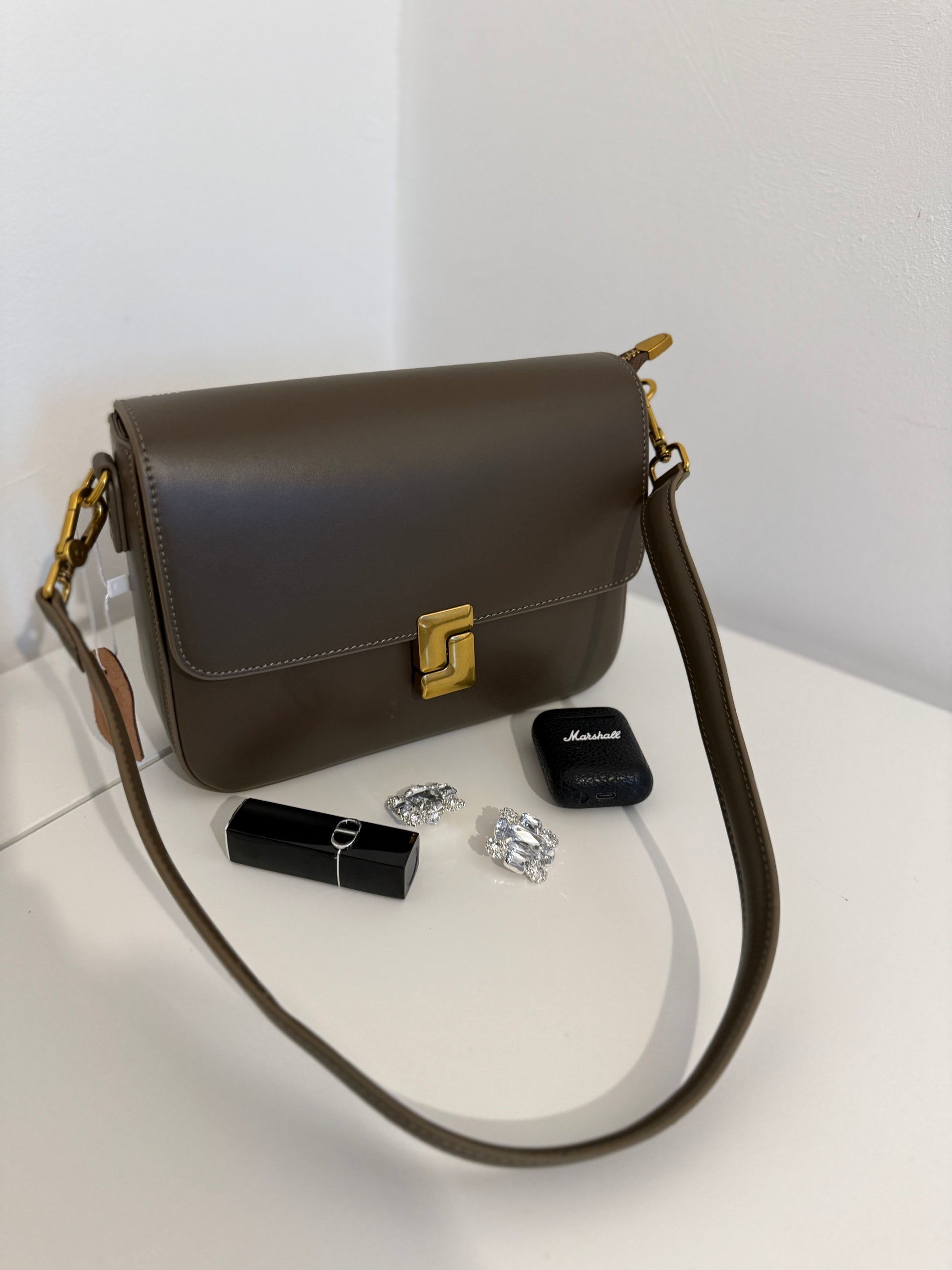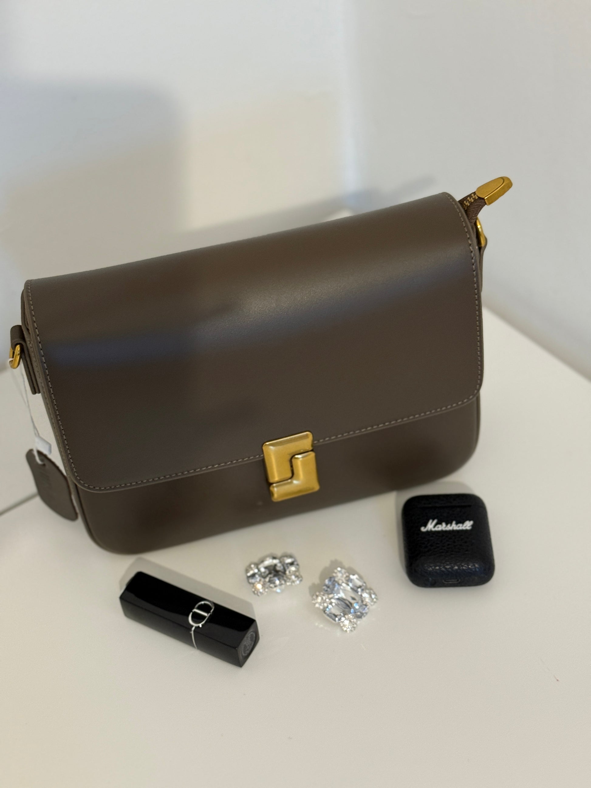 Crafted from premium natural leather, it features a refined silhouette with subtle golden details that elevate any look.