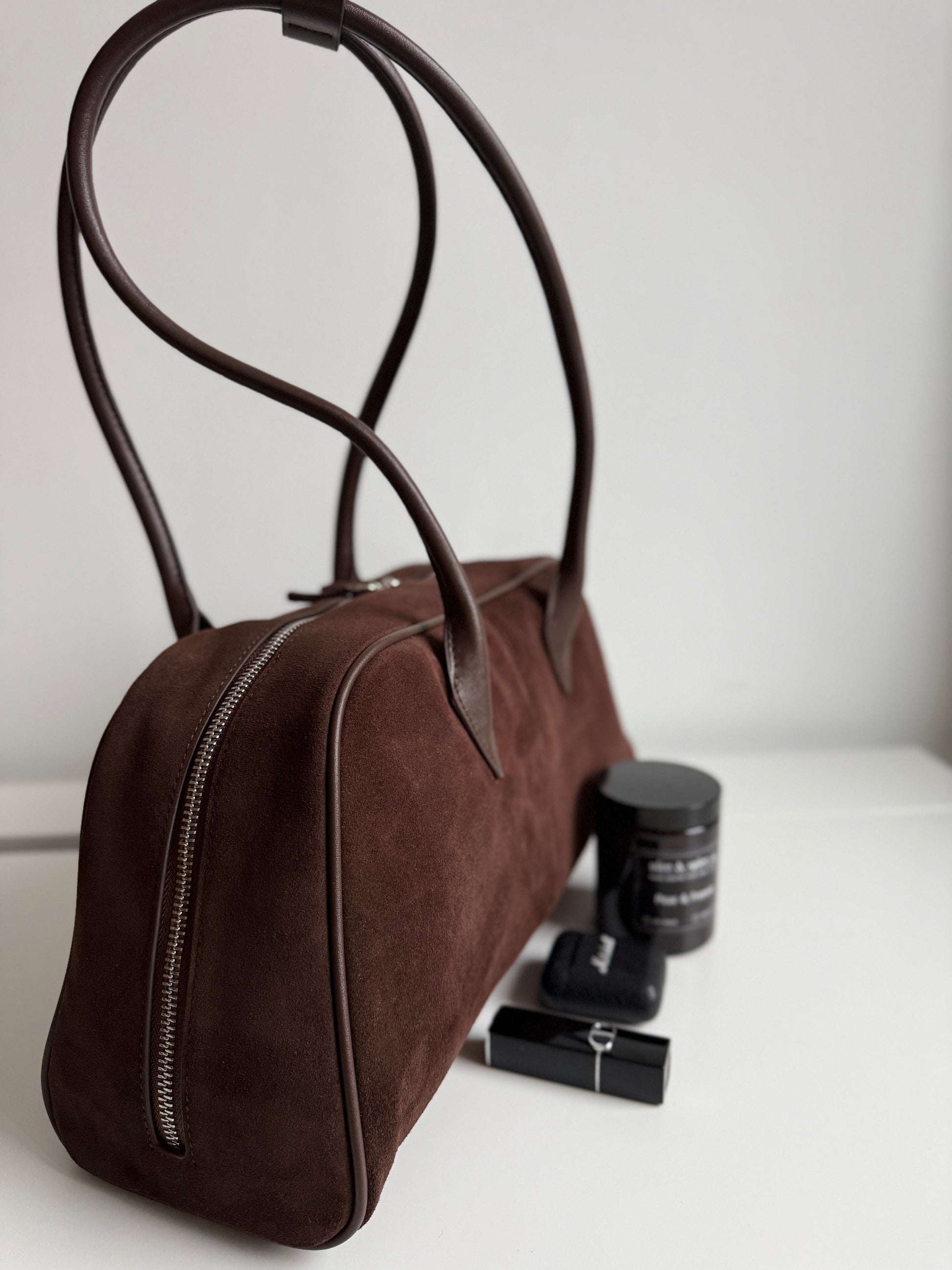 Meet Nina your new everyday essential — a soft chocolate suede leather bag crafted from 100% natural leather.
