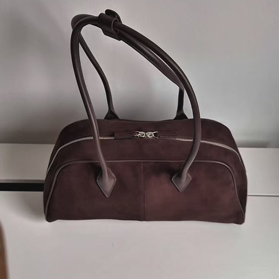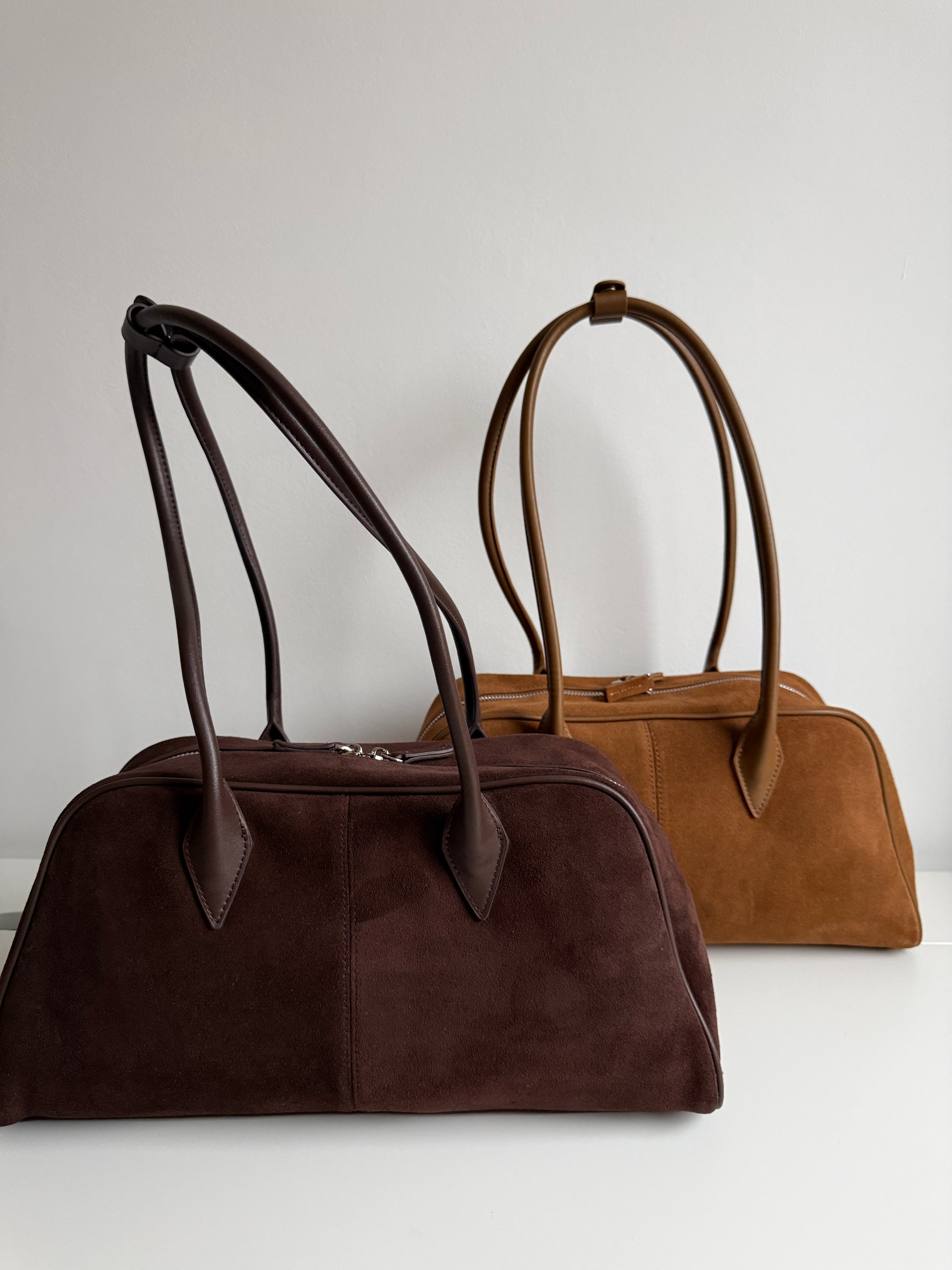 Nina - Chocolate Suede Leather Bag – 100% Natural Leather