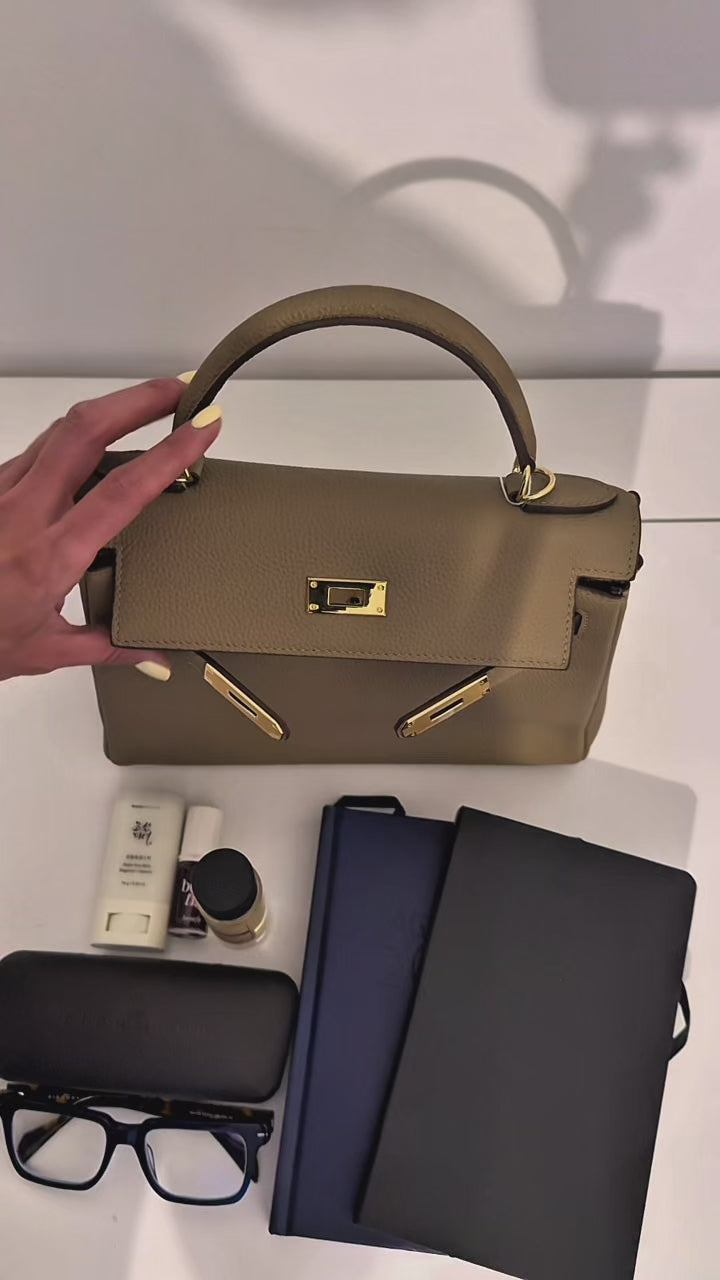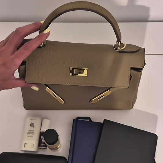 VERONIKA – Elegant Genuine Leather Handbag – Taupe